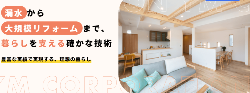 株式会社YMコーポレーションは、名古屋市中区に事務所を構える総合リフォーム店です。漏水からフルリフォームまで、幅広く対応しています。