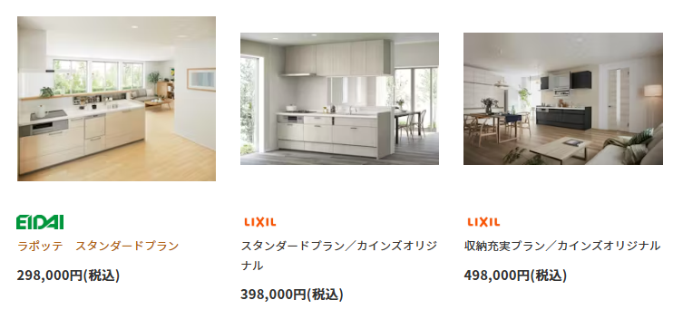 また、食洗機やレンジフードなどの設備をグレードアップすると、その分費用も変動する仕組みです。