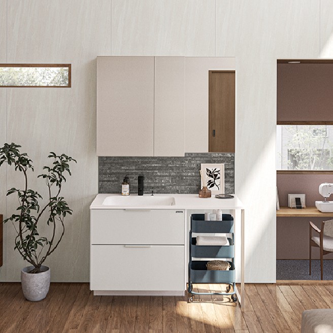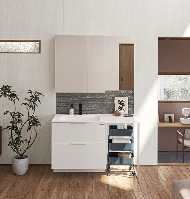 便利な水栓金具やお掃除ラクな洗面台ボウル、美しい化粧鏡など、魅力ある機能性が充実しているのも特徴です。