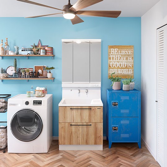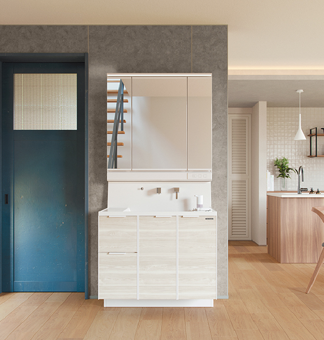 奥行きが50cmに設計されているため、機能は充実させつつも、洗面台のスペースが限られている方や、脱衣所などのスペースを確保したい方におすすめです。