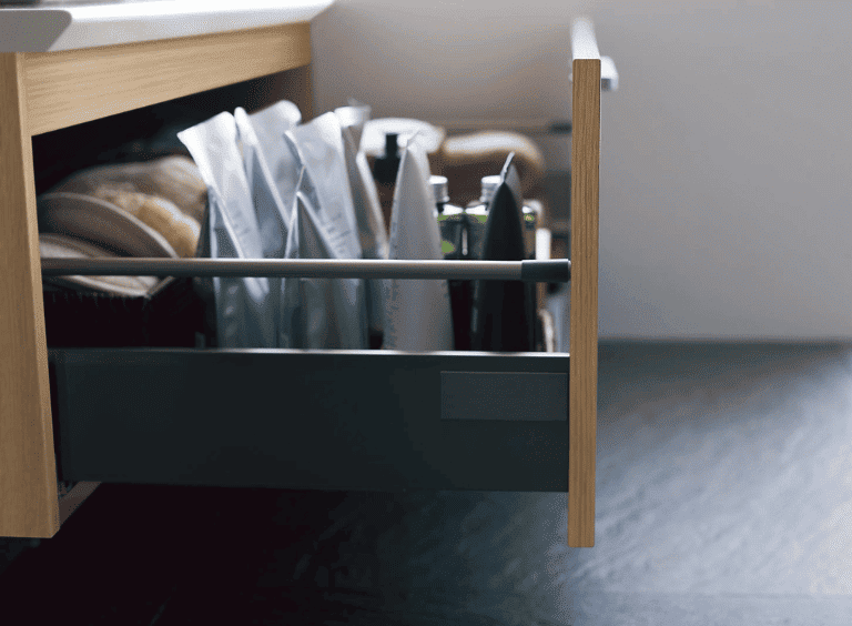 洗面ボール一体型におけるキャビネットには、3段引き出しに分かれるタイプ(収納①)と、パノラマスライドタイプ(収納②)に分かれます。