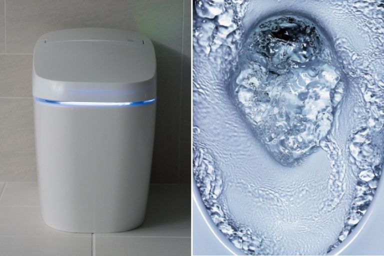 トイレに近づくと自動でフタが開き、使用後は自動で閉まるため、手を使う必要がなく衛生的。