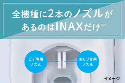LIXILの温水洗浄便座は、「おしり」と「ビデ」それぞれに独立した専用ノズルを採用しています。