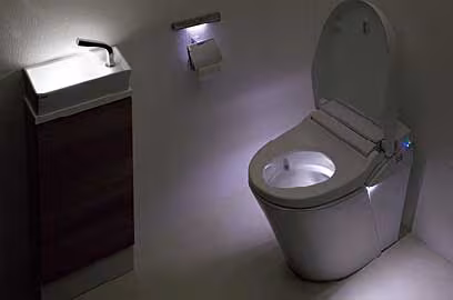 LEDの間接照明には特に満足しています。 夜中にトイレに起きても目が覚めにくく、優しいタ日のようなオレンジ色で落ちつきます。便器内は青い光で、それがまた高級感がありますね。 同居している高齢の母にとっても使いやすいトイレです