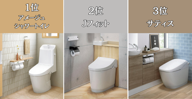 2025年に『リフォーム産業新聞』が発表した “リフォームのプロ348名がおすすめする人気トイレランキング”を参照し、リクシルのトイレを人気ランキングで表すと、下記のようになります。