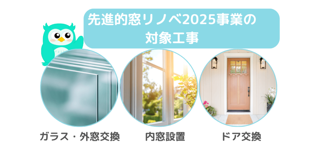 先進的窓リノベ2025において補助金の交付を受けるためには、以下のいずれかの工事を行う必要があります。